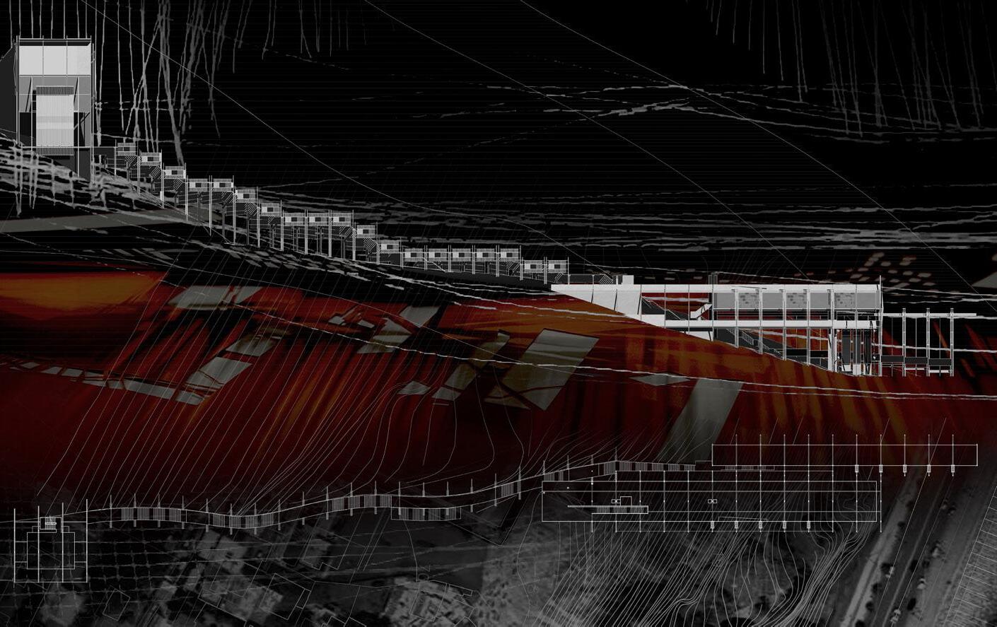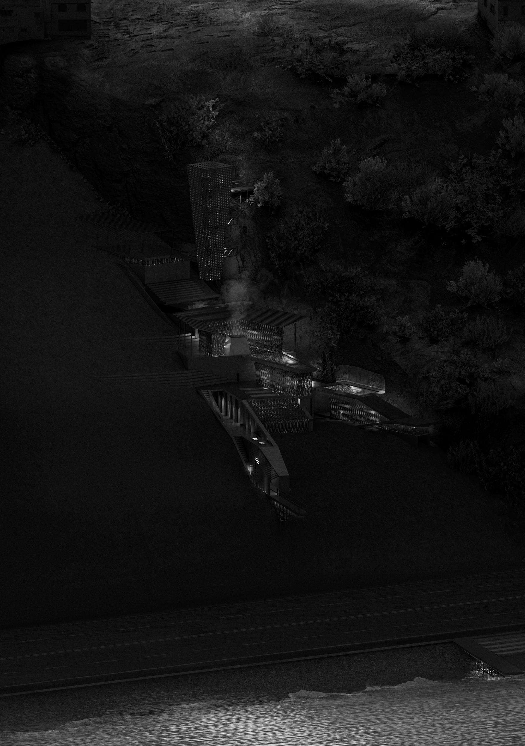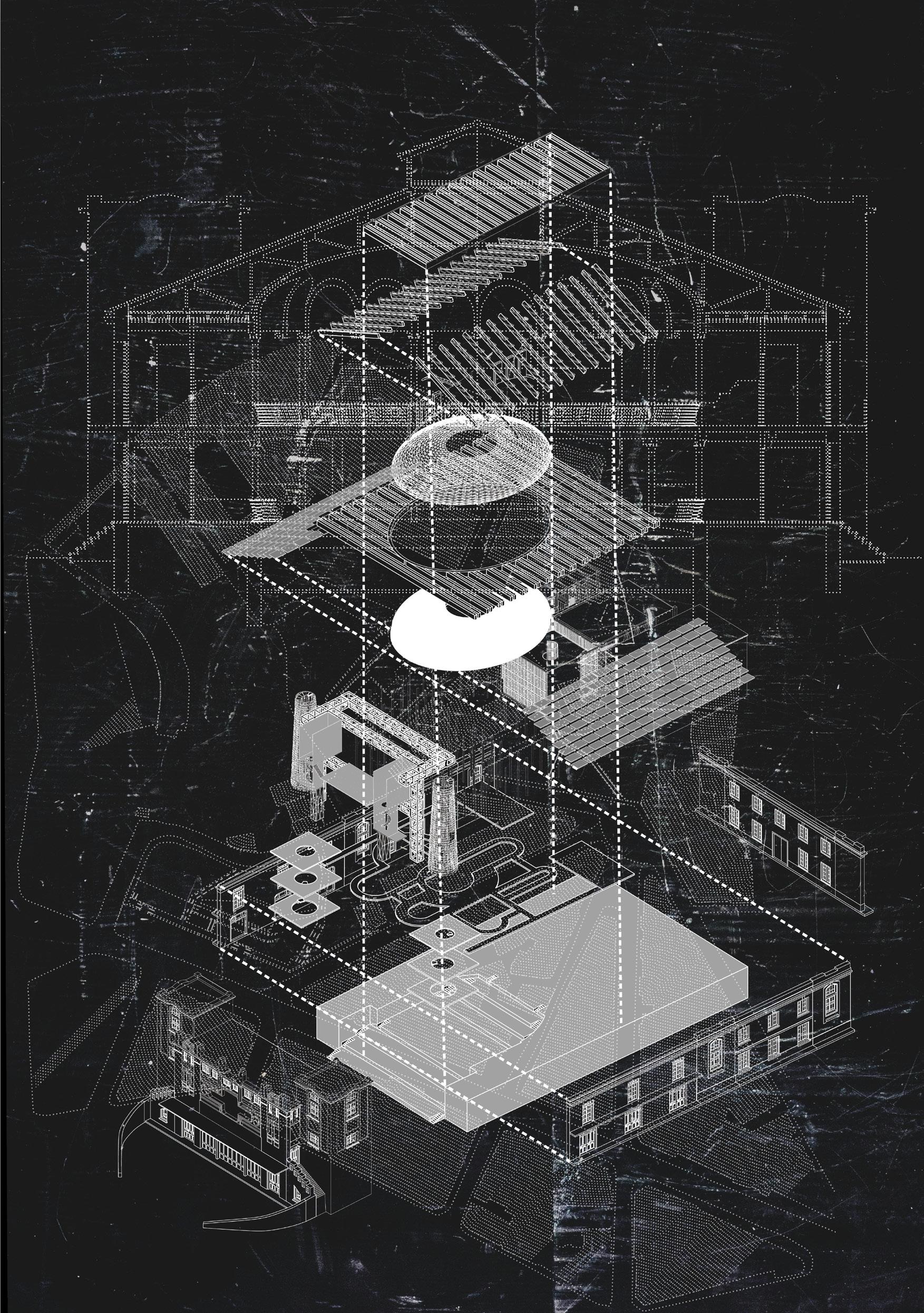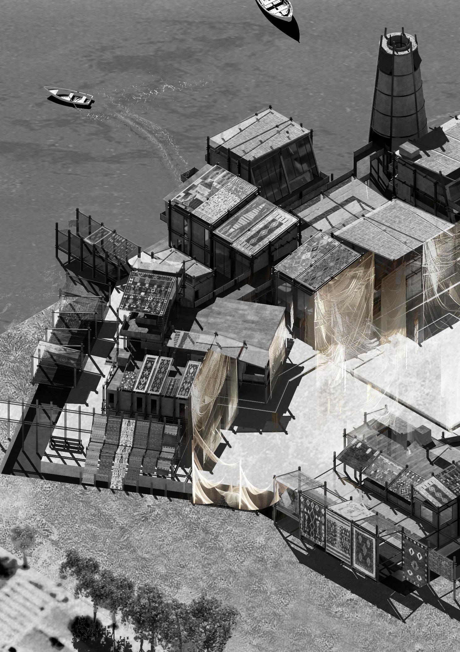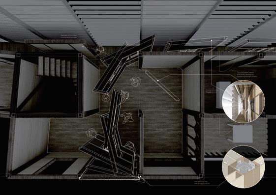A manipulated legal framework provides an opportunity to reclaim territory in a move against the zeitgeist. This series of chance operations becomes a form of cut-ups that projects back onto itself simultaneously. Opportunistic architectural interventions cloak themselves in the historic narratives present in the Petit Socco, addressing various issues ; corruption is tackled through a digital stock market, censorship is combatted within a free-press publishing house, pollution monitored from a hydrological laboratory, and surveillance obviated through a telecommunications hub.Host and guest switch roles with increasing acceleration, the parasitic visitor corrupting the former only then to be corrupted themselves. Hidden in plain sight, the architectures play with their histories, revealing and concealing certain aspects via a series of exposed seams. Collectively, they form the Interzone.