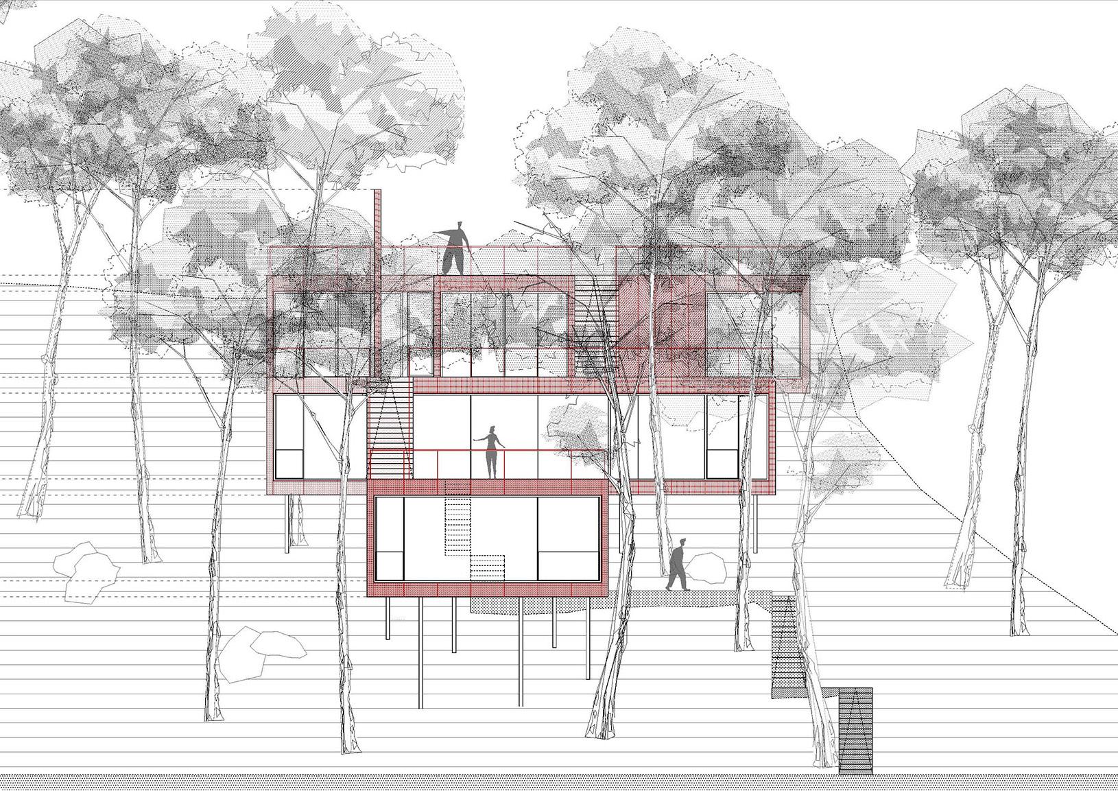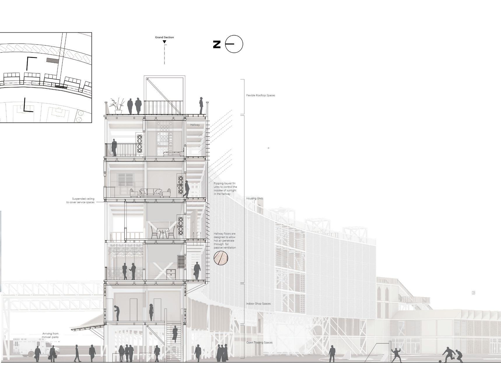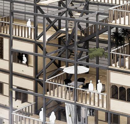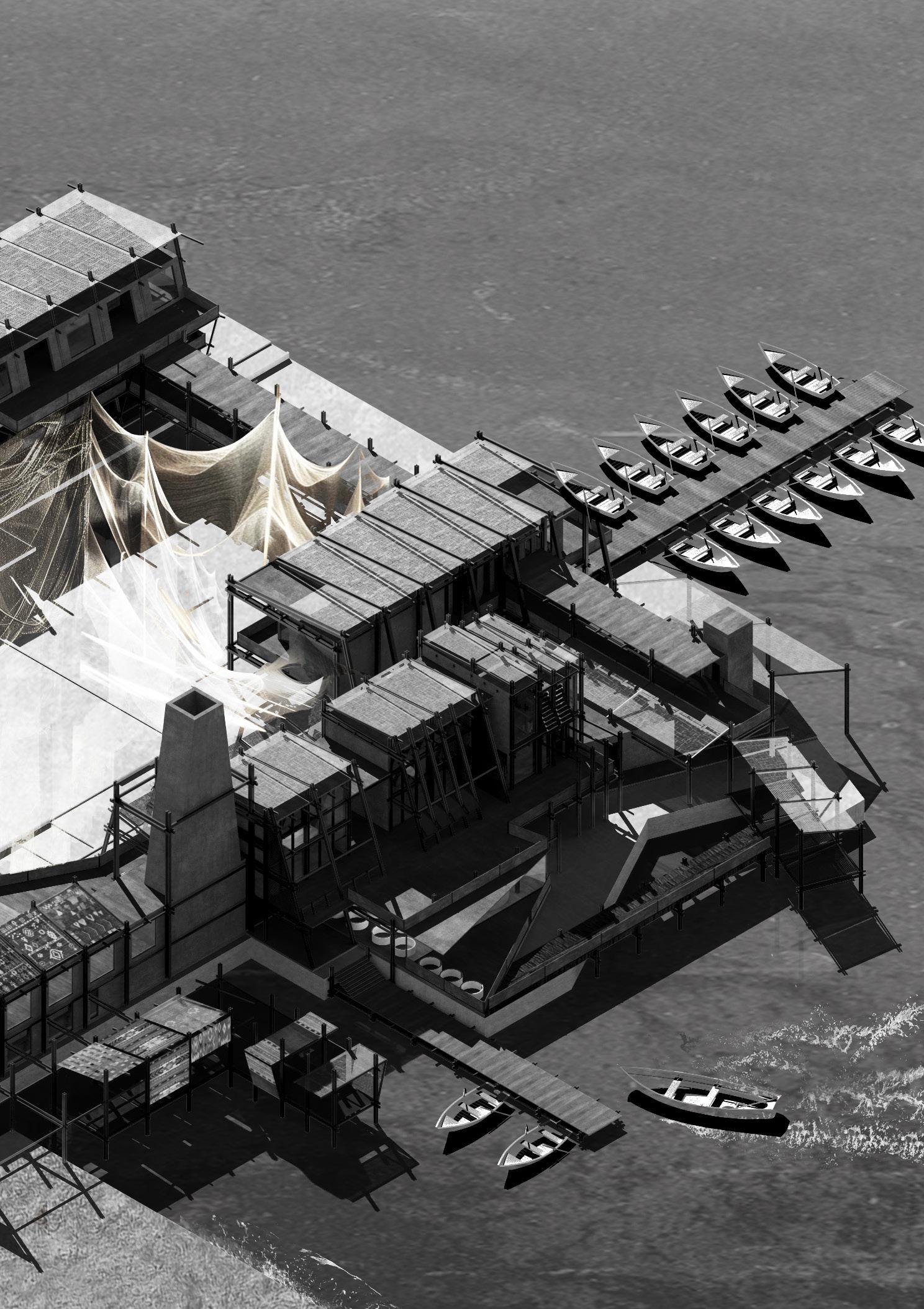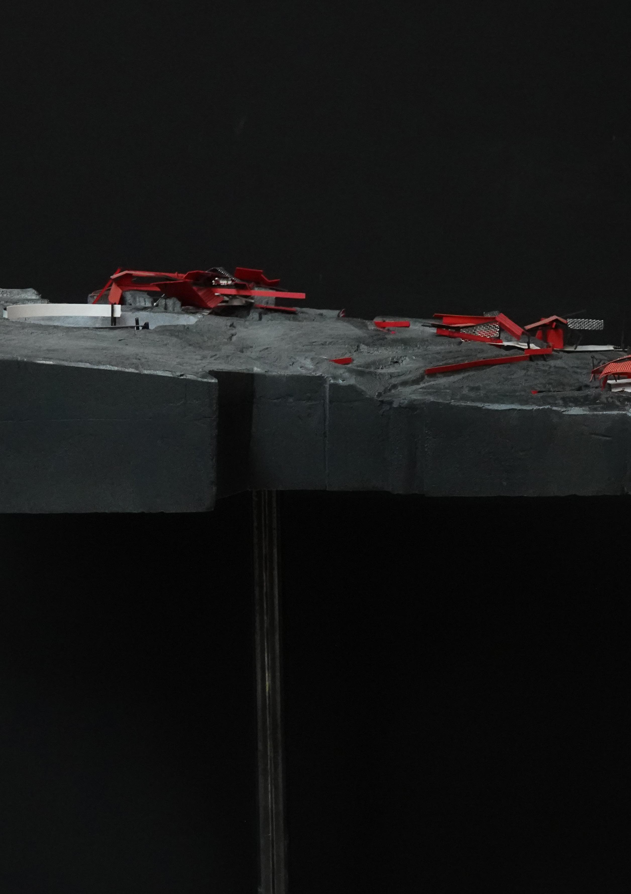 A manipulated legal framework provides an opportunity to reclaim territory in a move against the zeitgeist. This series of chance operations becomes a form of cut-ups that projects back onto itself simultaneously. Opportunistic architectural interventions cloak themselves in the historic narratives present in the Petit Socco, addressing various issues ; corruption is tackled through a digital stock market, censorship is combatted within a free-press publishing house, pollution monitored from a hydrological laboratory, and surveillance obviated through a telecommunications hub.Host and guest switch roles with increasing acceleration, the parasitic visitor corrupting the former only then to be corrupted themselves. Hidden in plain sight, the architectures play with their histories, revealing and concealing certain aspects via a series of exposed seams. Collectively, they form the Interzone.