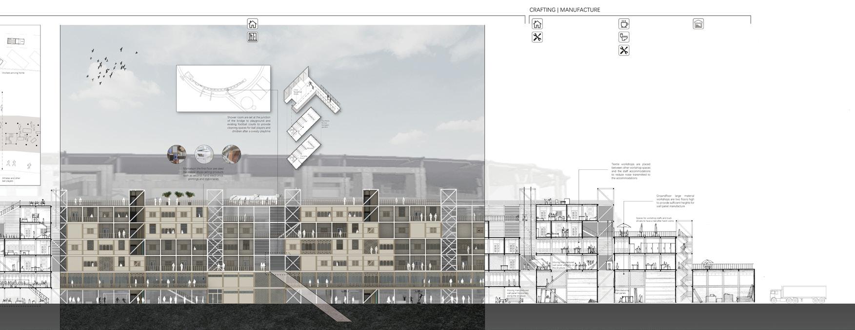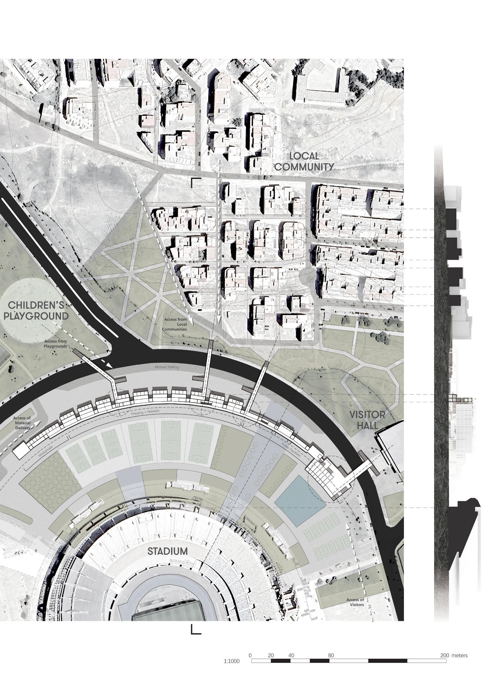 Site: Ibn Battuta Stadium, Tangier. Programme: Community Housing; Leisure Facilities; Craft Workshops.