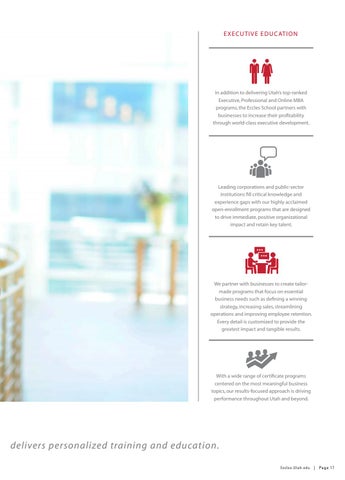 In addition to delivering Utah’s top-ranked Executive, Professional and Online MBA programs, the Eccles School partners with businesses to increase their profitability through world-class executive development.