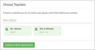Your children’s teachers will appear Ensure the teachers you wish to see are selected in green. If you do not wish to see a teacher, click on their name to de-select them.