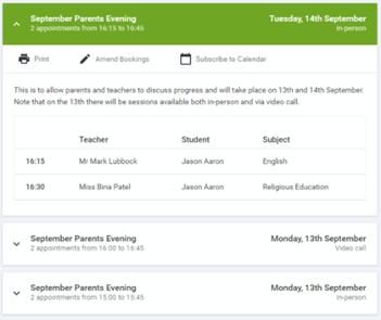 You can also view and print your appointments online by clicking the ‘Appointments’ tab. Please bring a print out of your appointment times to the parents’ evening.