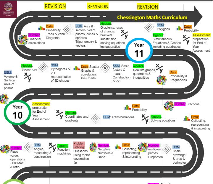This is an example of Tier 1 – Our Subject Route Maps. This shows the journey that a student at Chessington School takes through each subject and shows what they will learn about.