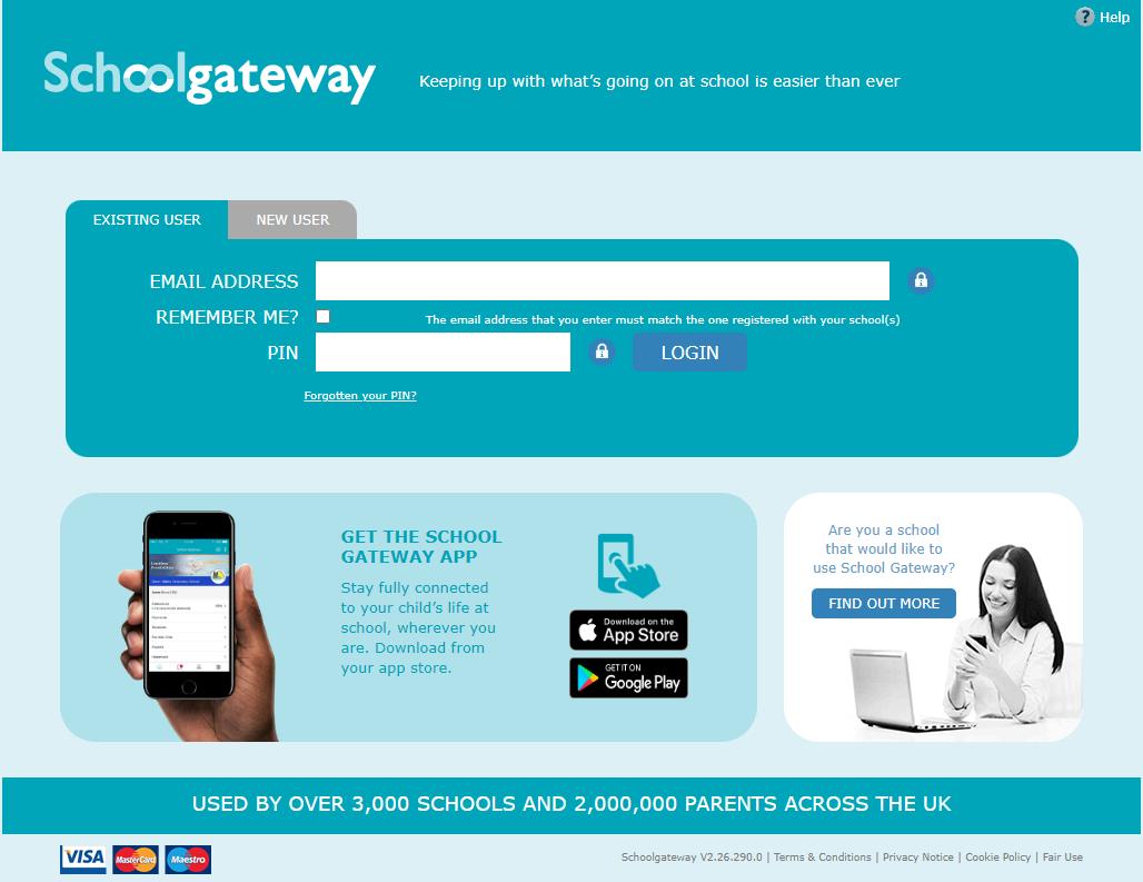 1. Pay online via schoolgateway.com. Once the student is registered on the school database, please log on with the email and address we hold for you Please download the smartphone app and you will be able to top up your child’s catering money account and also pay for trips as well as receive messages from the school via this app.