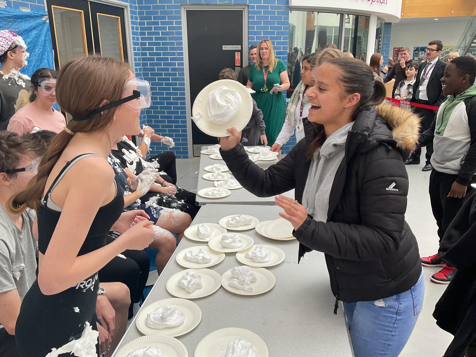 We hosted ‘Pie the Prefect’ on Thursday 28th March, to raise money for the Year 11 Prom. The event proved very popular, and gathered quite the crowd! Overall, it was highly successful, and enjoyed by all Thank you to all of the Prefects for being such good sports! Not only did you help raise money for your Prom, but you also put a smile on everyone’s faces too!