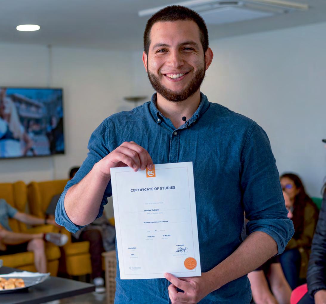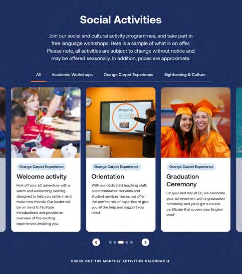 y Oferecemos workshops acadêmicos gratuitos e atividades extracurriculares organizadas pela EC em todos os centros pra promover a prática do idioma, enquanto você curte a cultura.