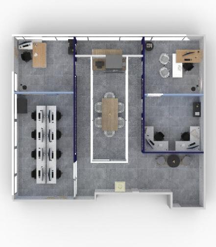 Dada la naturaleza del proyecto, donde la confidencialidad de la información de los clientes es primordial, la distribución de las áreas y la cuidadosa selección de materiales jugaron un papel crucial en el diseño.