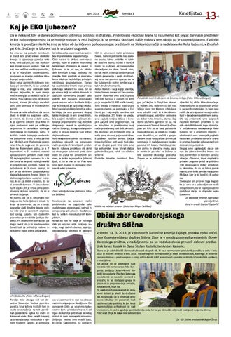 Občni zbor Govedorejskega društva Stična V sredo, 14. 3. 2018, je v prostorih Turistične kmetije Fajdiga, potekal redni občni zbor Govedorejskega društva Stična. Zbor je v uvodu pozdravil predsednik Govedorejskega društva, v nadaljevanju pa so vodstvo zbora prevzeli delovni predsednik Janez Kozjek in člana Štefan Kastelic ter Anton Kastelic. Zbora se je udeležilo 55 članov društva od skupnih 88, ki so z zanimanjem prisluhnili poročilu o delu v letu 2017 in načrtih društva v letu 2018. Po opravljenih formalnostih je sledil strokovni del, katerega je otvorila Jasmina Slatnar s predavanjem o vzreji odstavljenih telet in možnosti uporabe različnih računalniških aplikacij v kmetijstvu. Kot gostje so se predstavili tudi predstavniki semenarske hiše Syngenta, podjetje Josera-krmni dodatki ter podjetje Plocher, katerega predstavnik je navzoče seznanil s sredstvi, ki se dodajajo gnoju in gnojevki za preprečevanje smradu, števila ličink, muh itd. Po zaključenih predavanjih in strokovni debati je sledil še družabni del. Kmetovalci so si izmenjali strokovne izkušnje in potarnali tudi nad kmetijsko politiko, ki jim kroji nepredvidljivo prihodnost in nad vremenom, ki zavira zgodnja spomladanska dela, ter se po okrepčilu odpravili vsak proti svojemu domu. Pred vrati jih je že čakal nov delovni dan. Za GD Stična predsednik Bojan Štrus