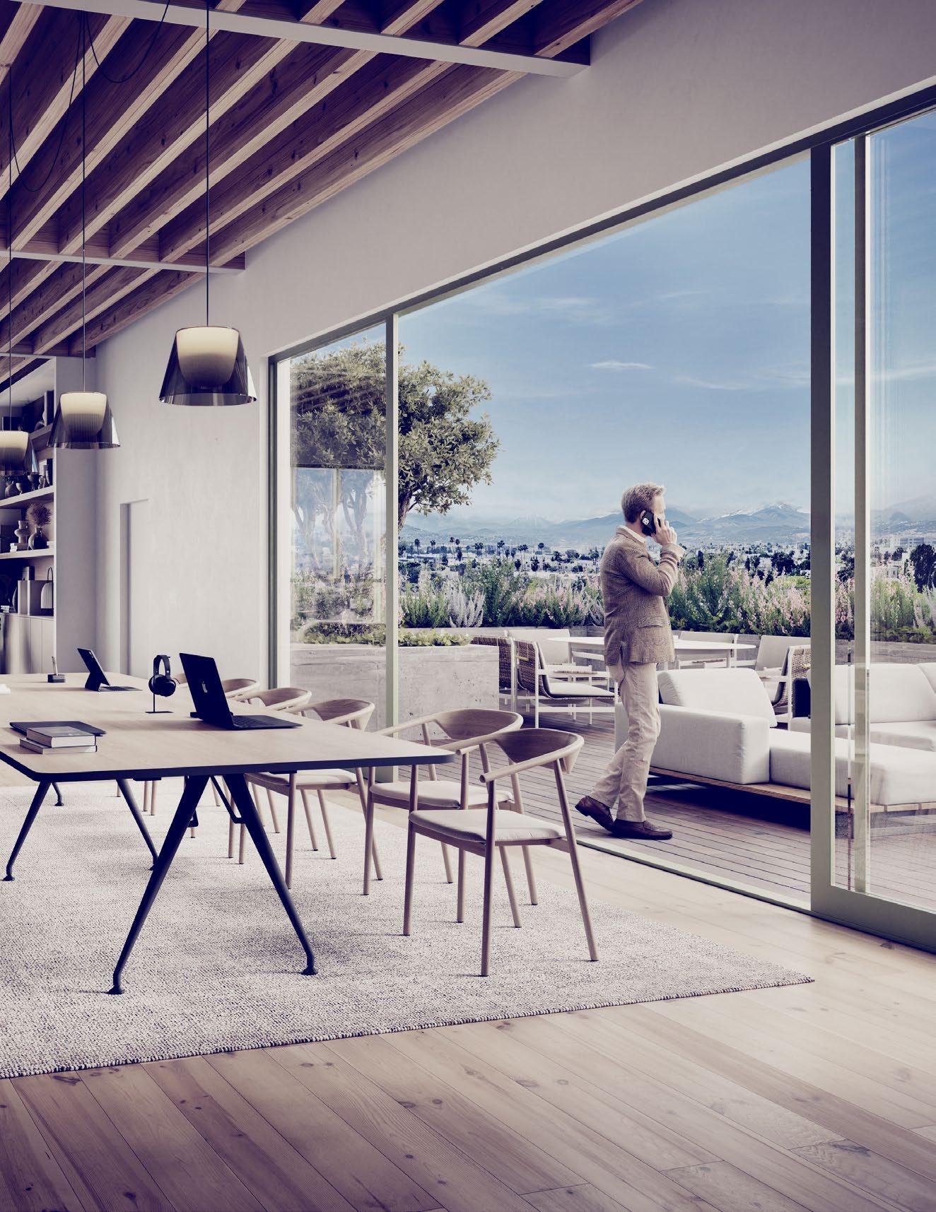 Framed by panoramic �ie�s and nati�e landscaping, this rooftop terrace offers a natural extension of the �orkspace—ideal for open-air meetings, quiet moments, or cityfacing inspiration.