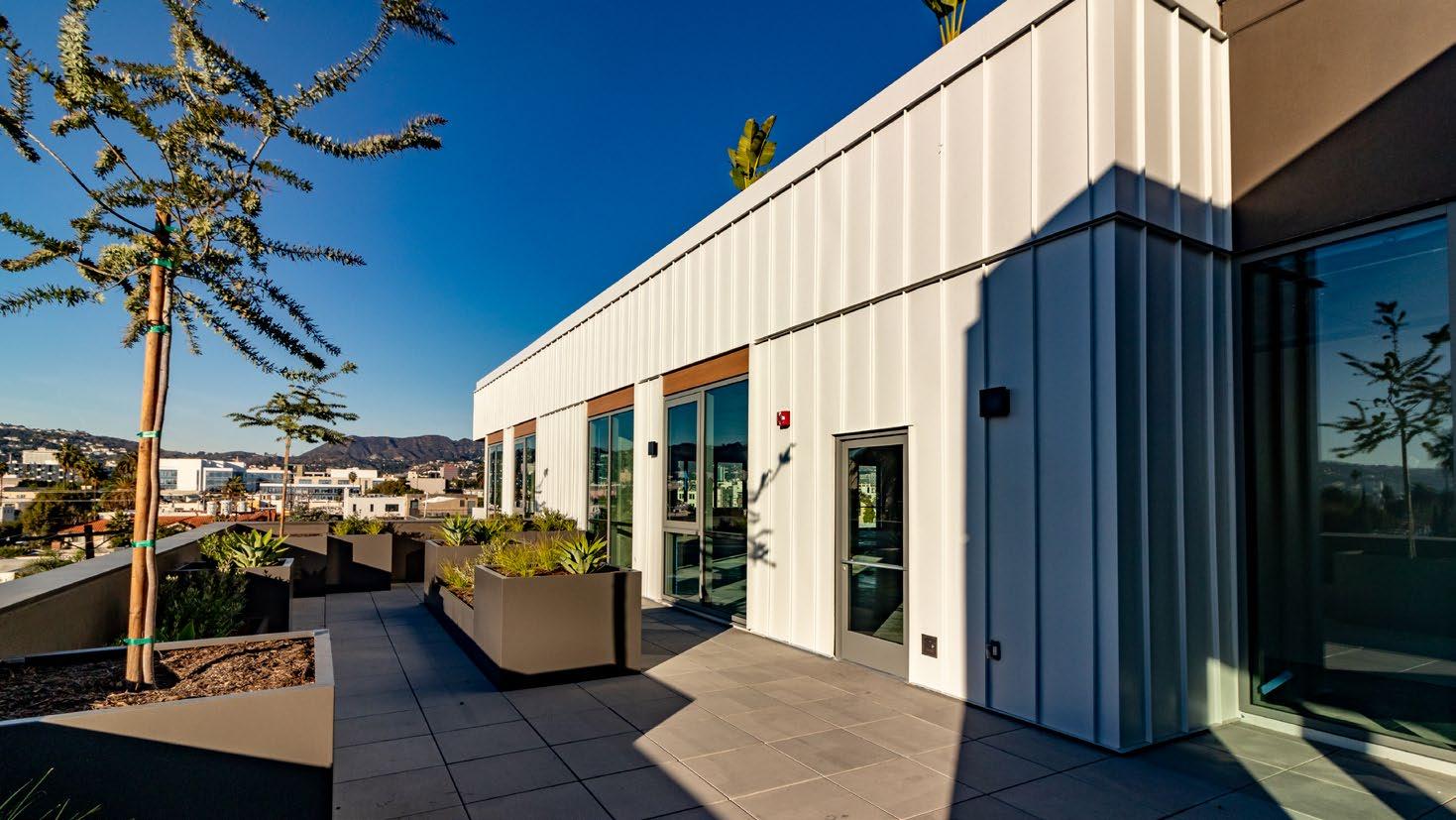 A pri�ate, ele�ated terrace extends the �orkplace outdoors, pro�iding a refreshing setting for team huddles, one-on-ones, or casual breaks—framed by meticulous landscaping and �ie�s of the Holly�ood Sign and hills.