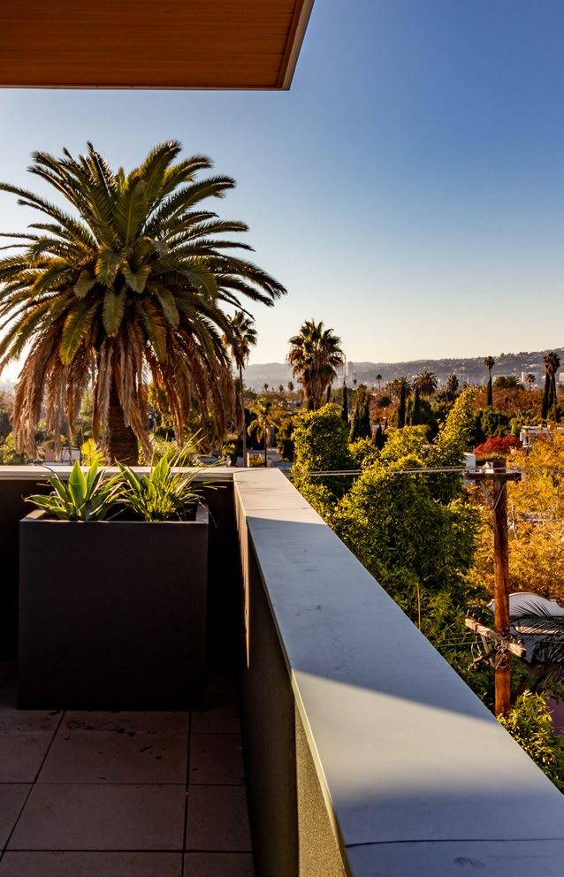 A seamless extension of the interior, the terrace offers ele�ated neighborhood �ie�s framed by mature palms and the Holly�ood Hills beyond. O�ersized custom sliding doors fully retract to blur the line bet�een inside and out, creating a flexible setting for open-air meetings, casual �ork, or moments of pause. Designed to bring light, air, and California li�ing directly into the �orkspace.