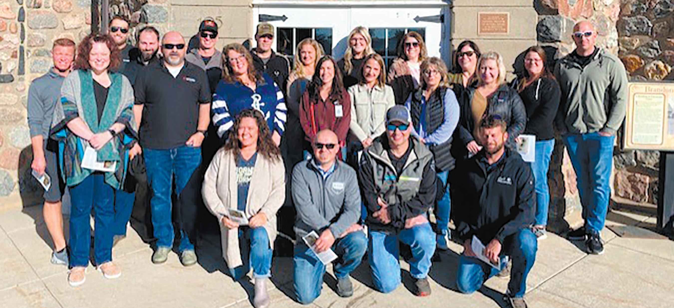 The 2024-2025 Leadership Alexandria class visited the Brandon History Center during the November History Day. Back: Andrew Rickers, Bremer Bank; Joshua Whiting, Alexandria Police Department; Nick Wacholz, ORB Management; Mike Pederson, WiDSETH; Allyson Radach, Geneva Capital; Cayla Olson, Vivie; Kaley Thoennes, Viking Bank; Jessie Hjelle, Alexandria Public Schools; Kayla Heffron, Amy Christopherson - State Farm Insurance; James Kracht, Alexandria Homes. Middle: Jason Ahrens, Ellingson Plumbing, Heating, A/C, & Electrical; Staci Bennett, Explore Alexandria Tourism; Quentin Warrey,
