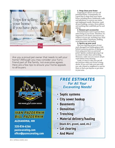 Has your dog dug up parts of your yard, damaged your landscaping or left behind numerous patches of dead grass from using your lawn as a personal potty? Spend a weekend sprucing it up to ensure it looks clean and inviting. Moreover, make sure you remove all pet waste before every showing.