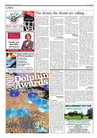 Marazion, Cornwall ■S Kilgour’s letter raised, once you peeled back the vit■To S Kilgour: You see the riol, an interesting phenomgathering as a ‘blot upon the enon that I believe started landscape’. To me it feels back in the 90s. like a beating heart. You say In those days, Byron was a that ‘restrictions should be heady mix of locals, ferals, increased’, and I feel like surfers and newbies who breaking the chains. You were attracted to the area may choose to not support seeking a fast buck among this ‘free life force’ but it the throngs of tourists. never stops supporting you. These newbies didn’t like Your vision creates ‘nause- the look and behaviour of the ating, repetitive and intrusive ferals, especially their drumracket’ and people leaving. ming, fire twirling and dancVery strange, we must be ing in the CBD. They put dreaming differently, as for pressure on council and me it is a very refreshing police to remove them. This strategy worked like a space in which freedom dances and seduces the charm. For a few years touronlookers. True, I don’t have ists still came to Byron on its an intention to ‘patronise’ reputation as an alternative the stalls, I love them, they destination. continued from page 11