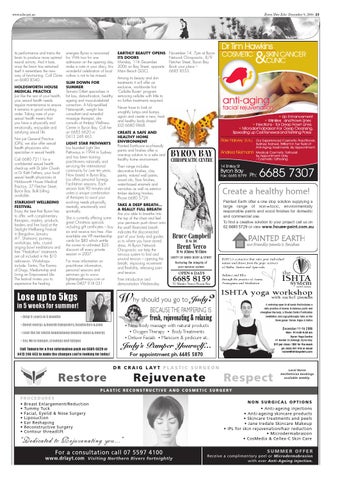 “Dedicated to Rejuvenating you...� For a consultation call 07 5597 4100 www.drlayt.com Visiting Northern Rivers fortnightly