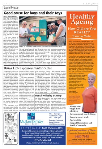 New volunteers and program participants are being sought to join the existing team to share their knowledge and love of Bruns with visitors and at the same time have the opportunity to sharpen up or learn new computer or admin skills. If you can spare a few hours a week please contact Carol on 66851003 or email info@ brunswickheads.org.au or pop into the Visitor Centre on Thursdays.