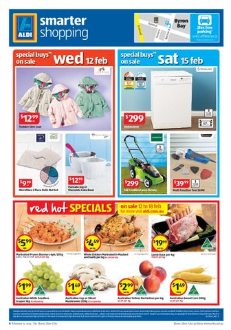 OPENING HOURS: See your local store or www.aldi.com.au for details. Meat and produce prices valid from 12/02/2014 -18/02/14 in our Queensland stores. Meat and produce prices are also available in Ballina, Byron Bay, Casino, Coffs Harbour, Grafton, Lismore, Toormina and Tweed Heads stores. Some items are sold in pre-packed sizes. While stocks last – please note stocks are limited and will vary between stores. Despite our careful planning, we apologise if selected items may sell out on the first day due to unexpected high demand. In the event of unexpected high demand, ALDI Stores reserves the right to limit purchases to reasonable quantities. ALS1046_W07_D