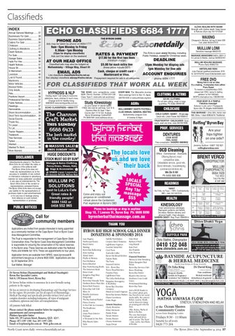 ECHO CLASSIFIEDS 6684 1777 THE BYRON SHIRE