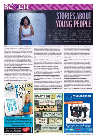 T H E AWA R D - W I N N I N G A U S T R A L I A N P L AY S U G A R L A N D , C R E AT E D BY N AT I O N A L YO U T H T H E AT R E C O M PA N Y A U S T R A L I A N T H E AT R E F O R YO U N G P E O P L E A N D I N S P I R E D BY T H E P E O P L E O F K AT H E R I N E A N D T H E N O RT H E R N T E R R I T O RY, C O M E S T O N O R PA AT L I S M O R E C I T Y H A L L T H I S W E E K . T H E E C H O S P O K E W I T H A RT I S T I C D I R E C T O R F R A S E R C O R F I E L D .