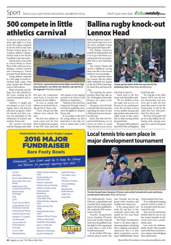 will compete at the regional carnival to be held at Coffs Harbour on September 3. ‘Students at this level have progressed through school and district qualifying carnivals to be eligible to compete,’ Tracey said. If successfuly at this level the young athletes can then head down to the state carnival in Sydney later in the year.