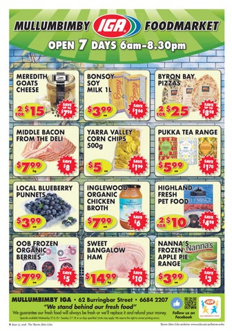 MULLUMBIMBY IGA • 62 Burringbar Street • 6684 2207 “We stand behind our fresh food” We guarantee our fresh food will always be fresh or we’ll replace it and refund your money. Specials available Wednesday 27.6.18 – Tuesday 3.7.18 or on days specified. Limits may apply. We reserve the right to correct printing errors.