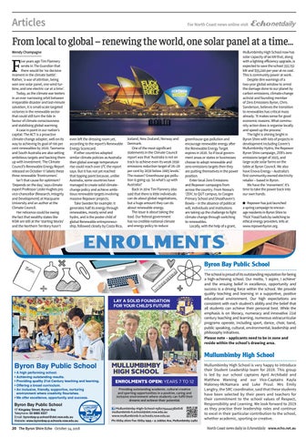 MULLUMBIMBY HIGH SCHOOL ENROLMENTS OPEN: YEARS 7 TO 12 Providing outstanding academic, cultural creative and sporting opportunities in a positive, caring and inclusive environment where students can fulfil their dreams and achieve their potential. Mullumbimby-High-School-158279444382618 mullumbimb-h.school@det.nsw.edu.au www.mullumbimb-h.schools.nsw.edu.au Ph: 6684 2600 Fax: 6684 1993 • 9 Jubilee Ave, Mullumbimby 2482
