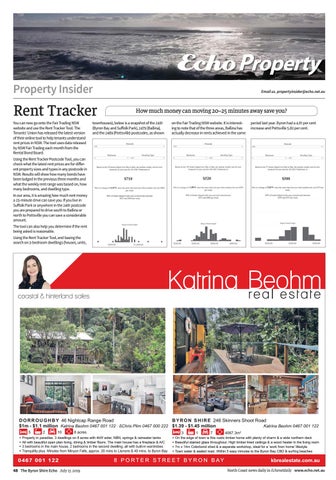 D O R R O U G H B Y 46 Nightcap Range Road B Y R O N S H I R E 246 Skinners Shoot Road $1m - $1.1 million Katrina Beohm 0467 001 122 Ă&#x;Chris Plim 0467 000 222 $1.39 - $1.45 million Katrina Beohm 0467 001 122 5