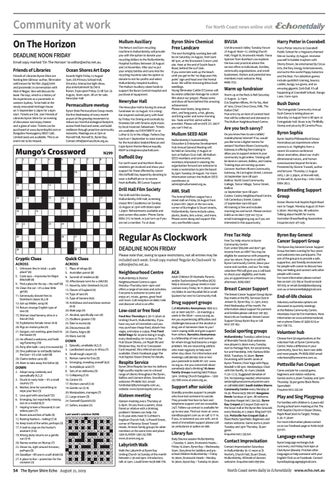 54 The Byron Shire Echo ƖīƖƆƐ ǩǨǽ ǩǧǨǰ