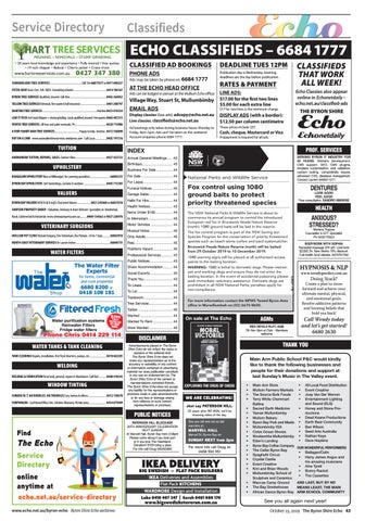 The Echo Service Directory online anytime at echo.net.au/service-directory www.echo.net.au/byron-echo Byron Shire Echo archives