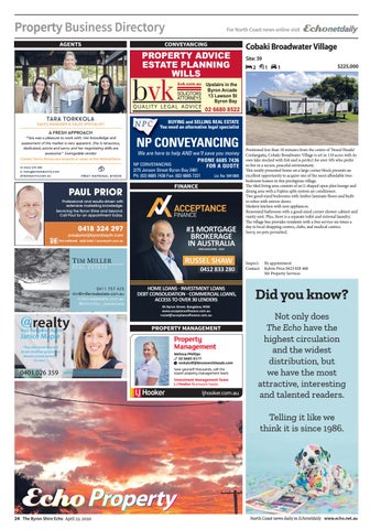 24 The Byron Shire Echo żſĶō ǩǩǽ ǩǧǩǧ