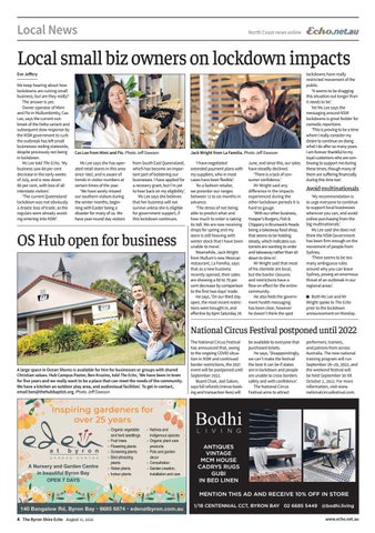 Local small biz owners on lockdown impacts Eve Jeffery We keep hearing about how lockdowns are ruining small business, but are they really? The answer is yes. Owner operator of Mimi and Flo in Mullumbimby, Cas Lee, says the current outbreak of the Delta variant and subsequent slow response by the NSW government to curb the outbreak has left small businesses reeling statewide, despite previously not being in lockdown. Ms Lee told The Echo, ‘My business saw 60 per cent decrease in the early weeks of July, and is now down 80 per cent, with loss of all interstate visitors’. ‘The current Queensland lockdown was not obviously a drastic loss of trade, as the regulars were already avoiding entering into NSW’.