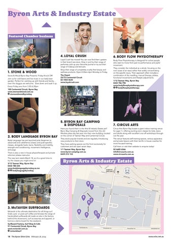 LOVE YOUR VOICE Has anyone ever told you that you can’t sing? They were WRONG! EVERYONE CAN SING (and I can prove it!) SINGING IS MORE FUN WHEN YOU DO IT WITH OTHERS MORE DO IT WITH and Byron Bay Singing – Group Song – Wednesdays in Brunswick Heads Wheel of Life Studio Wheel Studio • 21 Fingal Street 21 Street • 7:15pm • $15 Cnr Brigantine & Wollongbar St, Byron Arts & Industry Estate | 6685 5212 www.hotelandhome.com.au | bedsrus.com.au *Conditions apply. Limited time from participating stores. Discounts off recommended retail price. Accessories not included. UP TO 60% OFF 1300 748 948 hardysolar.com.au YOUR LOCAL SOLAR SPECIALIST! Solar Maintenance Batteries Lic # 78609 2024 MAGAZINE + WEBSITE PACKAGE 2024 MAGAZINE + ON SALE NOW! Book now to have your own comprehensive listing Book now to have your own on the website and be in the magazine out May 22! on the website and be in the out 22! byronhealing com au / book-now-2024 byronhealing.com.au/book-now-2024 Your guide to maintaining health and wellbeing in Byron and the Northern Rivers Your to health and in and the Northern Rivers w w w. byro n h e a l i n g .co m . a u www.byronhealing.com.au Early Bird booking discount Bird discount www.spaghetticircus.com Enrol now for Term 1 TEACHING KIDS TO STAND ON THEIR OWN TWO HANDS Organic Landcare Incorporated (formerly Byron Shire Chemical Free Landcare), and around 30 volunteers planted over 200 trees on Saturday morning at a property on Azalea Street, Mullumbimby, as part of the ongoing efforts to restore the Big Scrub. For more info, visit www.organiclandcareinc.org. Photo Eve Jeffery