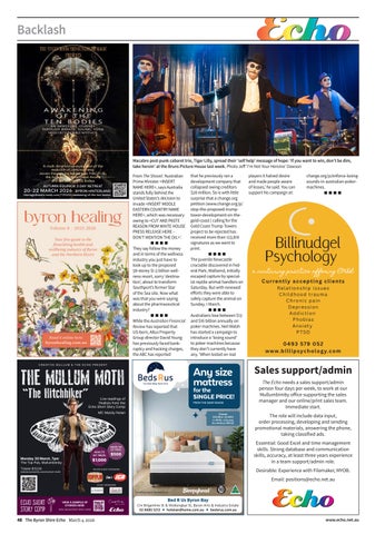 The Echo needs a sales support/admin person four days per week, to work at our Mullumbimby office supporting the sales manager and our online/print sales team. Immediate start.