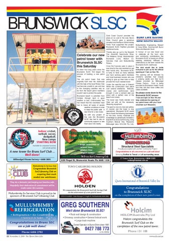 Congratulations to Bruns SLC on a job well done! * iÊÈÈn{ÊÓÇnÎ 22 November 3, 2009 The Byron Shire Echo