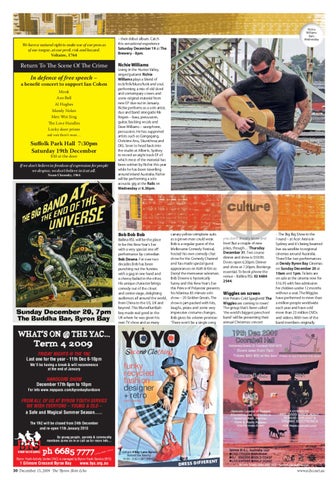 you don’ alre read re ady kn ad now aand don’t’t al already know love! But a couple of new jokes, though…’ Thursday December 31. Two course dinner and show is $59.90. Doors open 6.30pm. Dinner and show at 7.30pm. Bookings essential. To book phone the venue – Ballina RSL 02 6686 2544.