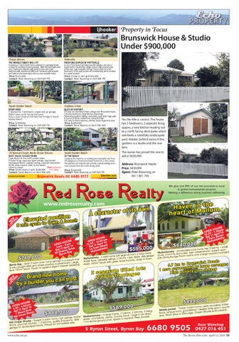 Yes the title is correct. The house has 3 bedrooms, 2 seperate living spaces, a new kitchen leading out to a north facing deck/patio which overlooks a tastefully landscaped yard. Hidden behind some of the gardens is a studio and the rear lane. The owner has priced this one to sell @ $839,000. Address: Brunswick Heads Price: $839,000 Agent: Peter Browning on 0411 801 795