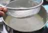 4. Zeef de bloem, maïzena en een snufje zout er bij en spatel deze met een houten