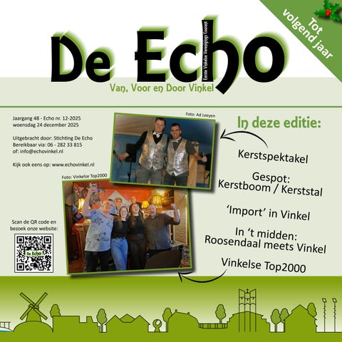 Jaargang 48 - Echo nr. 12-2025 woensdag 24 december 2025 Uitgebracht door: Stichting De Echo Bereikbaar via: 06 - 282 33 815 of: info@echovinkel.nl Kijk ook eens op: www.echovinkel.nl Foto: Vinkelse Top2000