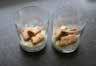 2. Breek de lange vingers in tweeën en doop deze één voor één een paar seconden in de koffie en verdeel dan een paar stukjes over het romige mengsel in de glaasjes. Druppel hier een klein beetje van de overige advocaat over en maak weer een nieuwe laag met het roommengsel, lange vingers gedoopt in espresso en een beetje advocaat.
