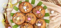 5. Bak de paaskoeken in ongeveer 15 tot 18 minuten licht goudbruin. Haal ze uit de oven en druk meteen de extra gekleude paaseitjes bovenop de warme koeken terwijl ze nog zacht zijn.