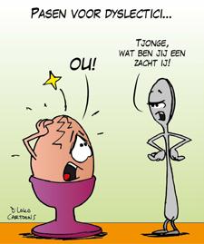 “Pietje, hoeveel eieren liggen er als jij er 3 bij legt?” Vraagt de meester.