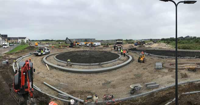 Er wordt volop gebouwd in Vinkel maar niet als het regent, even schuilen met de buren.