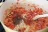 2. Snipper de uien en hak de knoflook fijn. Fruit de ui aan in een beetje boter en voeg de knoflook toe wanneer de ui glazig begint te worden. Bak nog 2 minuten me
