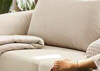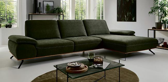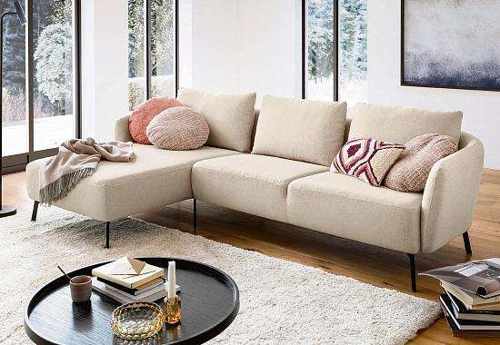 Sofa LS 5611193-Sitzer mit Longchair rechts, Füße, Beine, Gestell: Winkelfuß, Schwarz, Metall, SH: 43cm, Stoff Cyber moos, 100% aus recycletem Polyester, Kontrastnaht, Beige, Maße: ca. 322x187x89 cm, 1.899,-