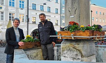 Der Frühling ist in Rosenheim angekommen Die Stadtgärtnerei hat in den vergangenen Tagen die Innenstadt mit insgesamt 7500 Pflanzen und Blumen ausgestattet Die Herbstbepflanzung wurde abgeräumt und durch Frühlingsblumen wie verschiedene Narzissen, Hyazinthen, Bellis, Primeln oder Ranunkeln ersetzt, beispielsweise in den Pflanztrögen am
