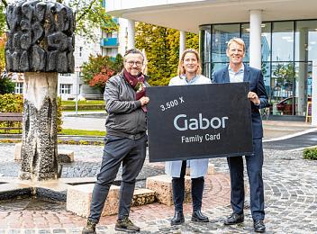 AlsBeitrag zurAnerken nung fürdie großartigen Leis tungen, diedie Menschen im Gesundheitswesen leisten, überreichteAchim Gabor 3500 seiner „Family Cards“ an dieAngestellten derRo MedKliniken.Mit dieser Karteist es fürdie Inhaber und derenFamilien möglich zu Mitarbeiter Konditionenin denGabor Fabrikshops einzu kaufen