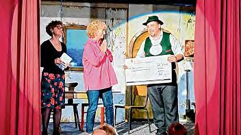 Theaterverein hierfür den KinderschutzbundRosenheim aus. ZuBeginnder letzten VorstellungüberreichteThomas Reichhart, Vorstandder HeimatbühneRosenheim, der Ersten Vorsitzendendes Kinderschutzbunds, Irmi Bauer undihrerKolleginMagdalena RestleeinenScheckinHöhe von850Euro.