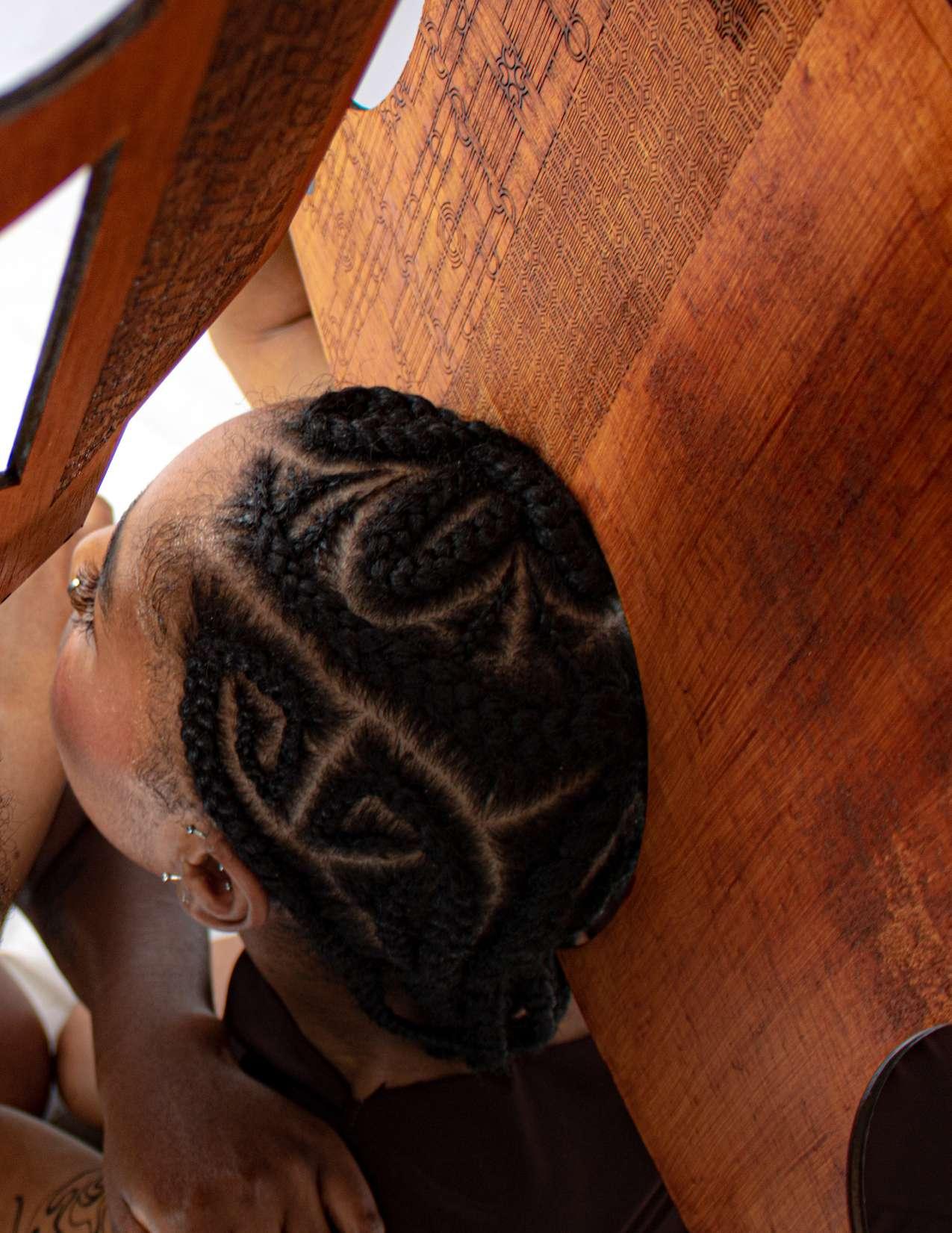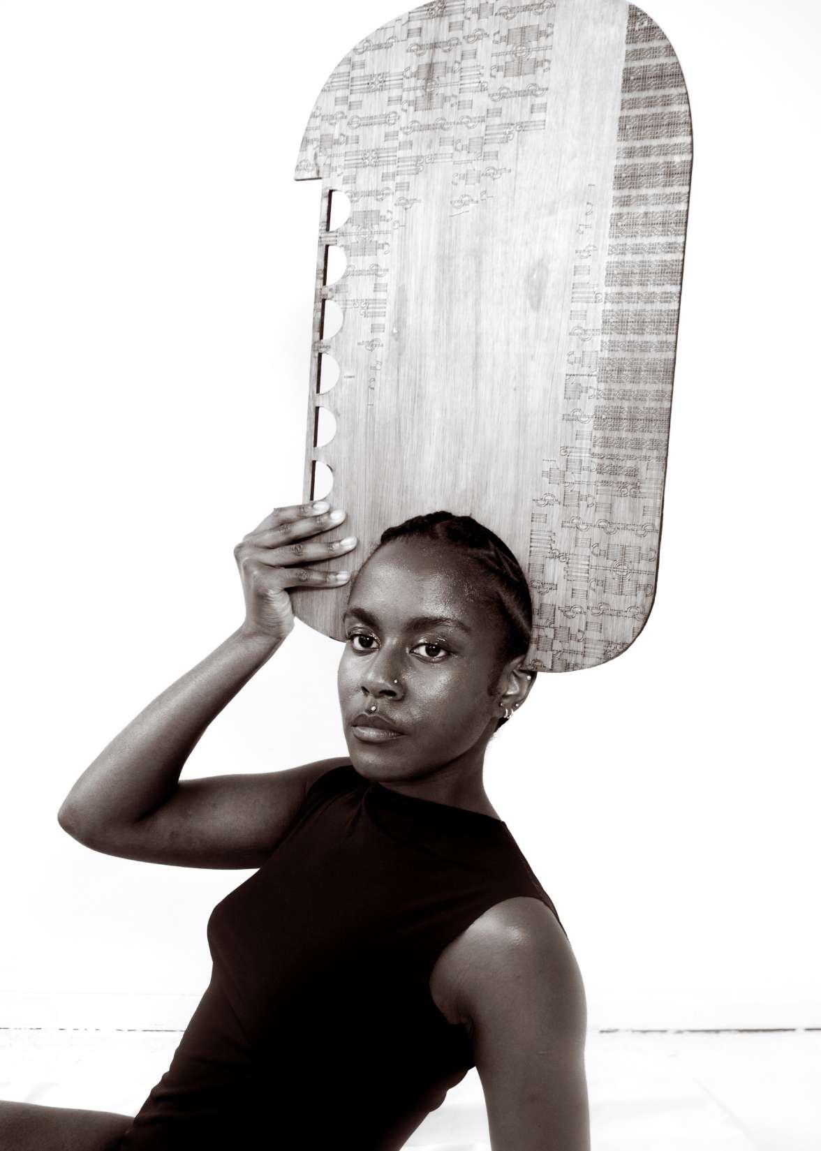 Black artists and researching Black liberatory wellness, Black European identity, and Black women’s migration. As an artist, Allysia draws from traditional Surinamese woodcraftmanship to create laser-cut wooden corsets and headpieces, merging traditional techniques with contemporary design. Their practice reflects a deep engagement with Black studies and a commitment to cultural preservation, innovation, and care.