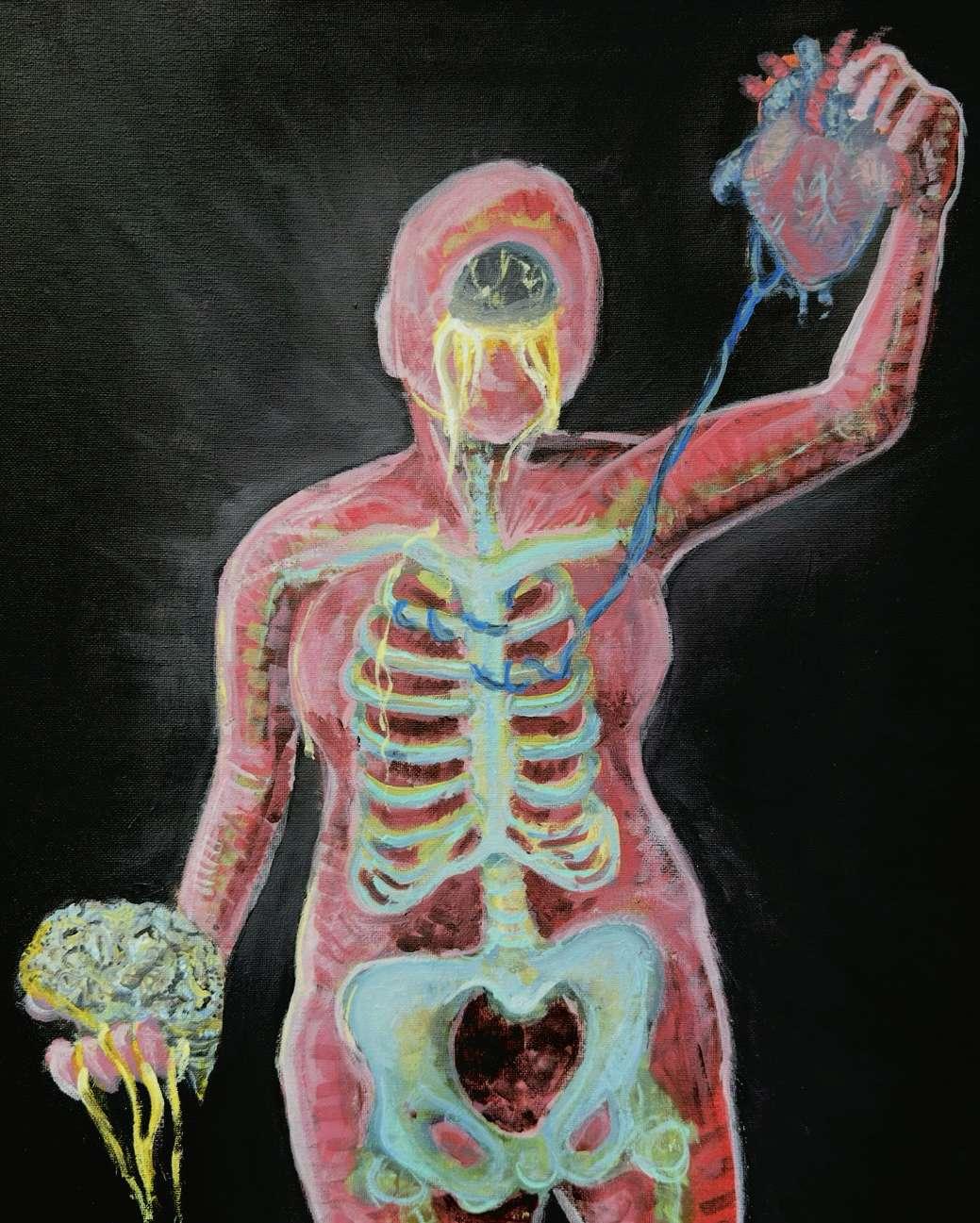 Finn Jackson is a 16 year old painter whose work often reflects her experience with anxiety and exploration of her identity, along with her