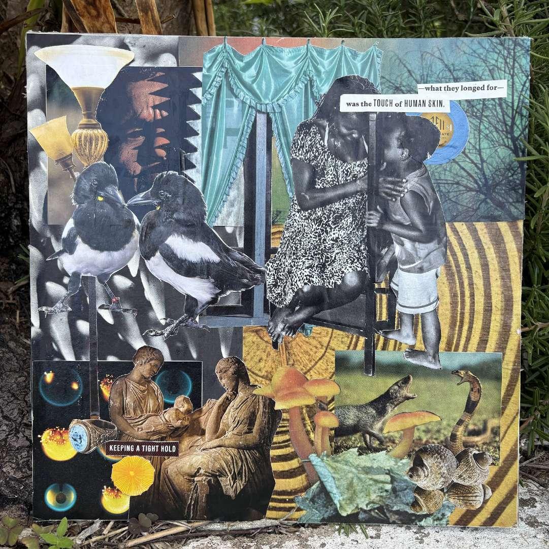 Jewels Newkirk is a multidisciplinary artist and owner of mothmothermakes, a Brooklyn based art and accessory brand. Working in ceramics, collage, and film photography, they explore themes of memory and individuality, and the ways time, places, and relationships combine to affect the human experience. Their tagline, “follow your own light,” resonates throughout each of their practices and emphasizes a deep dedication to individuality and nod to their connection to nature. Jewels invites viewers to take from their work what resonates and to leave the rest; to follow our own light with intention, without fear, and while giving ourselves grace.